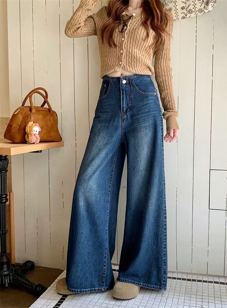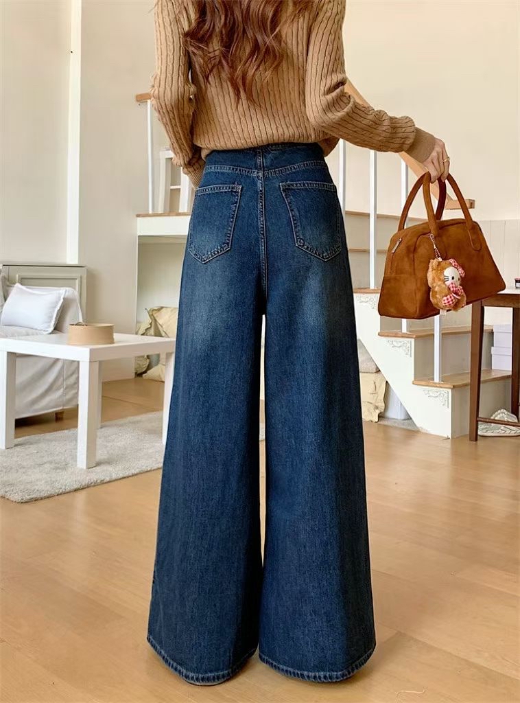 衣櫃必櫃❤️🔥高腰闊腳牛仔長褲 · 🔸Made in Korea 🇰🇷 🔸顏色:深藍,淺藍 · 📐尺寸📐 Size XL/L/M/S 腰30/28/26/24“ Hips 41/40/39/38” 長41/40/39/38”