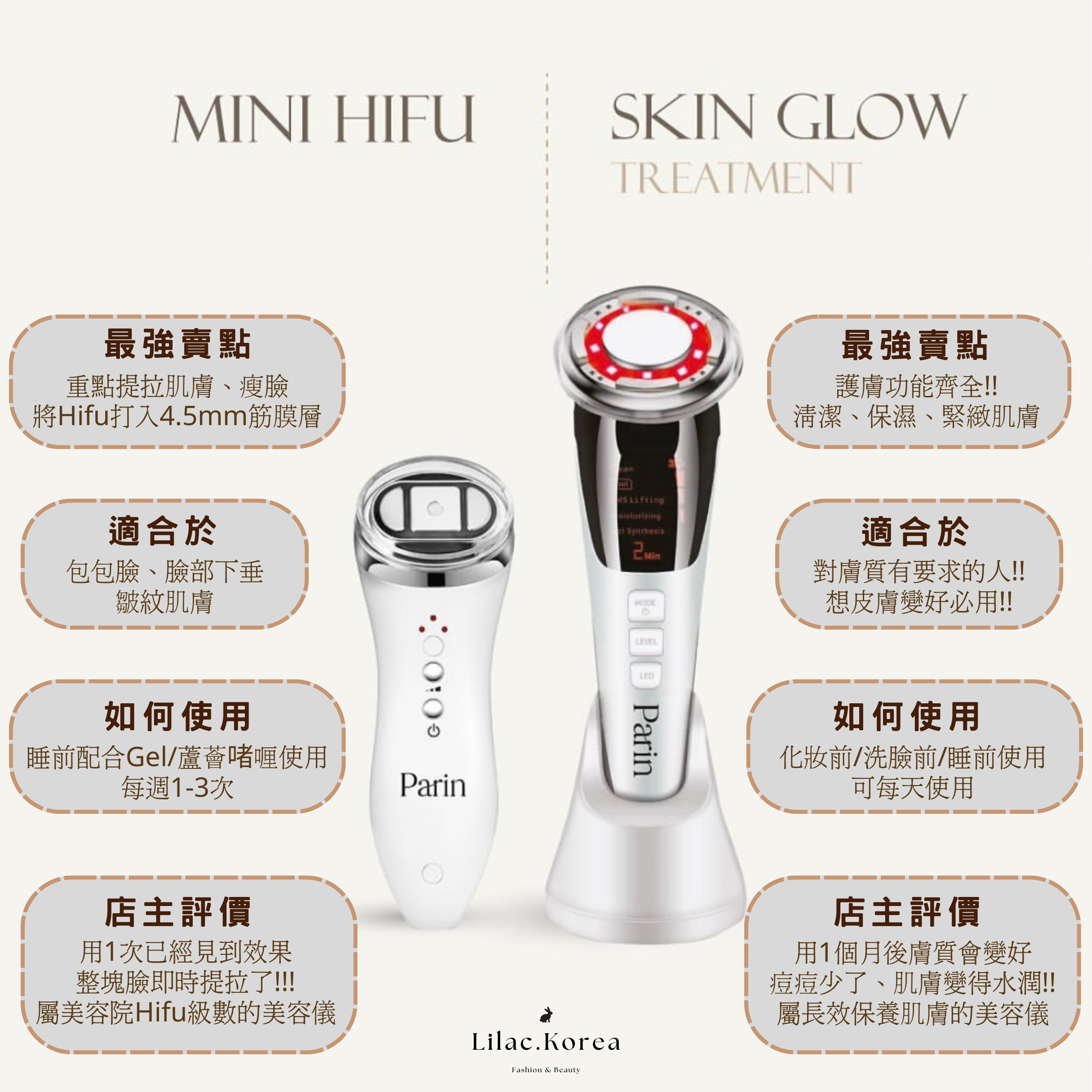Parin Glow(Golden Brown)+ Mini Hifu +Firming Treatment Gel