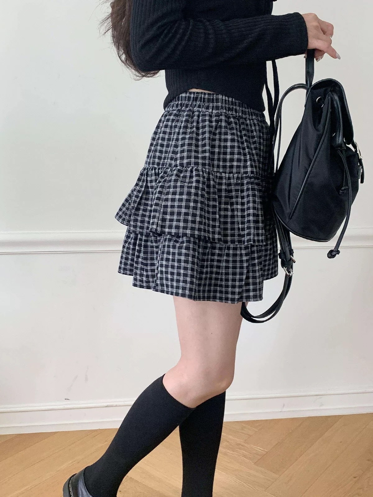 ♟️棋盤格格Ruffle 短裙 #SK18138 👍🏻有褲仔內厘防走光 🔸Made in Korea 🇰🇷 🔸顏色:Black,Navy · 📐尺寸📐 均碼,後半橡筋腰 腰23-33“ Hips 38”長16”