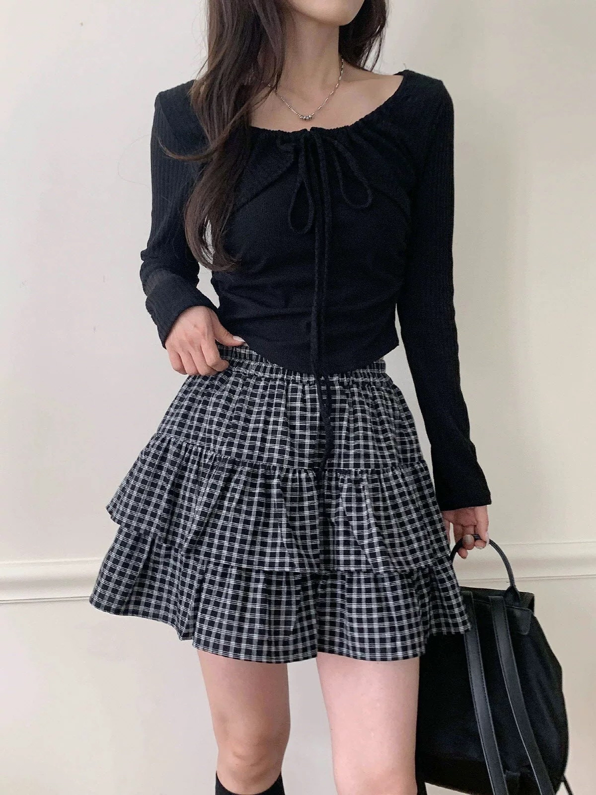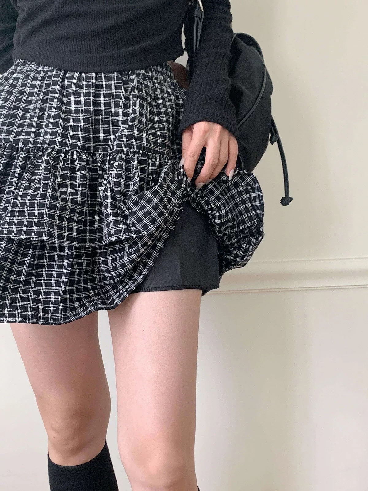 (韓國預購)♟️棋盤格格Ruffle 短裙 #SK18138