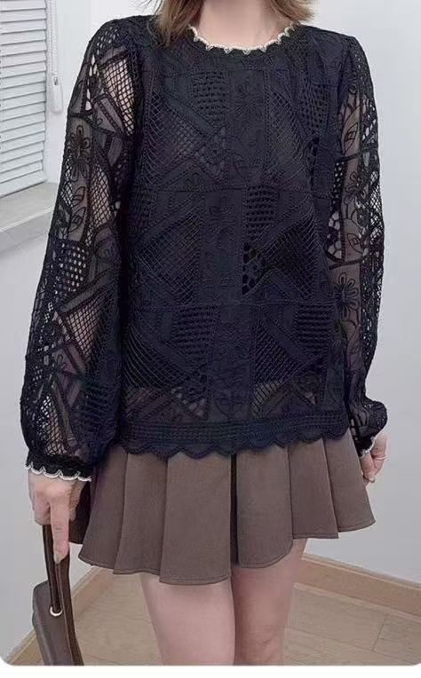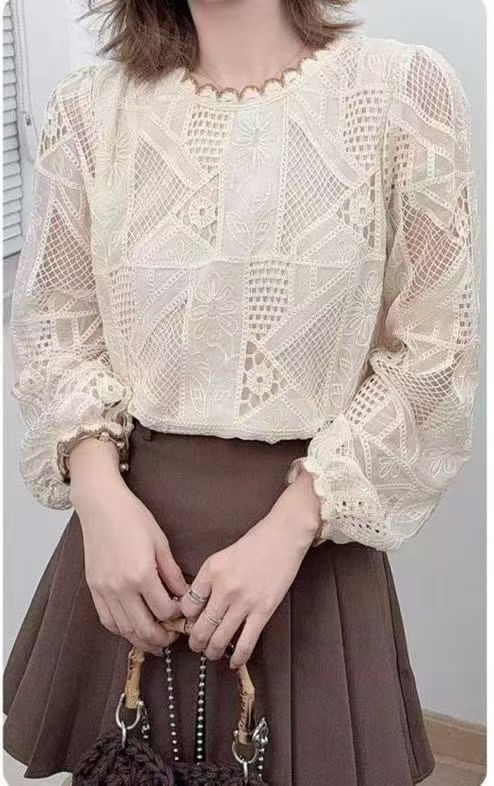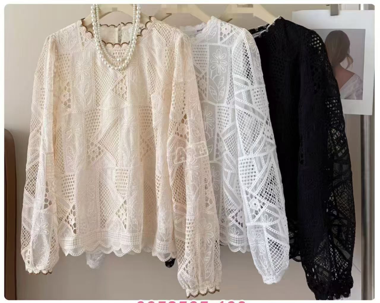 優雅✨織花泡泡長袖襯衣 #Top18955 · 🔸Made in Korea 🇰🇷 🔸顏色:米杏,白,黑 · 📐尺寸📐 肩15“胸 40”長23”