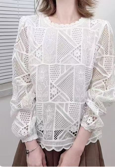 (韓國預購)優雅✨織花泡泡長袖襯衣 #Top18955