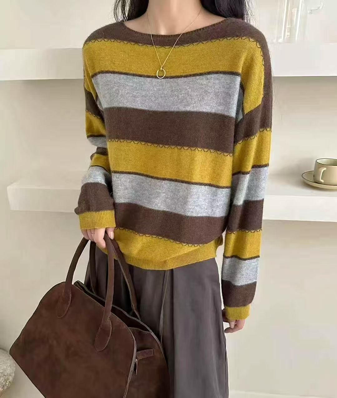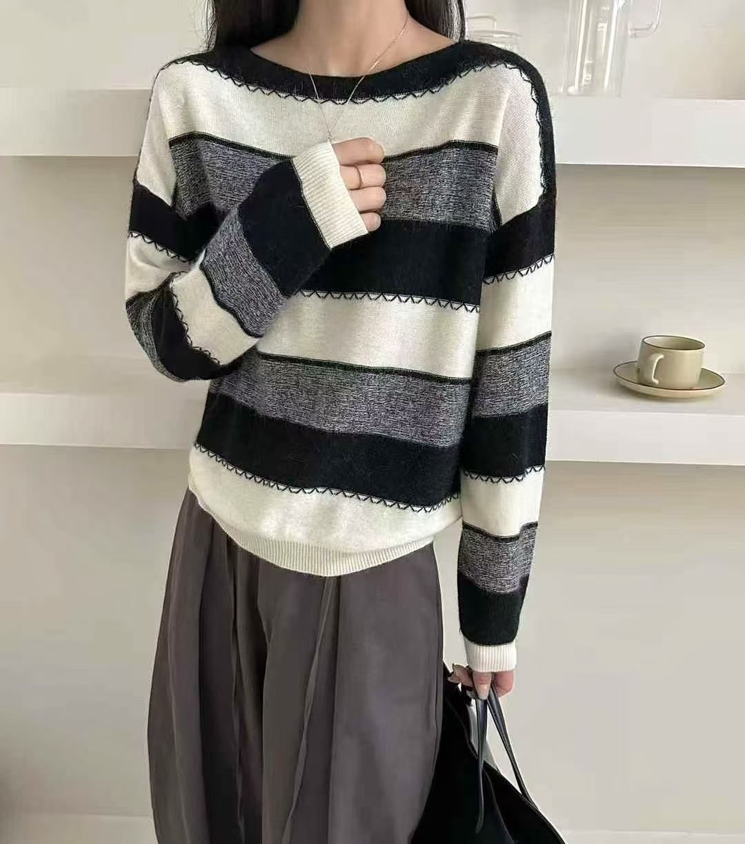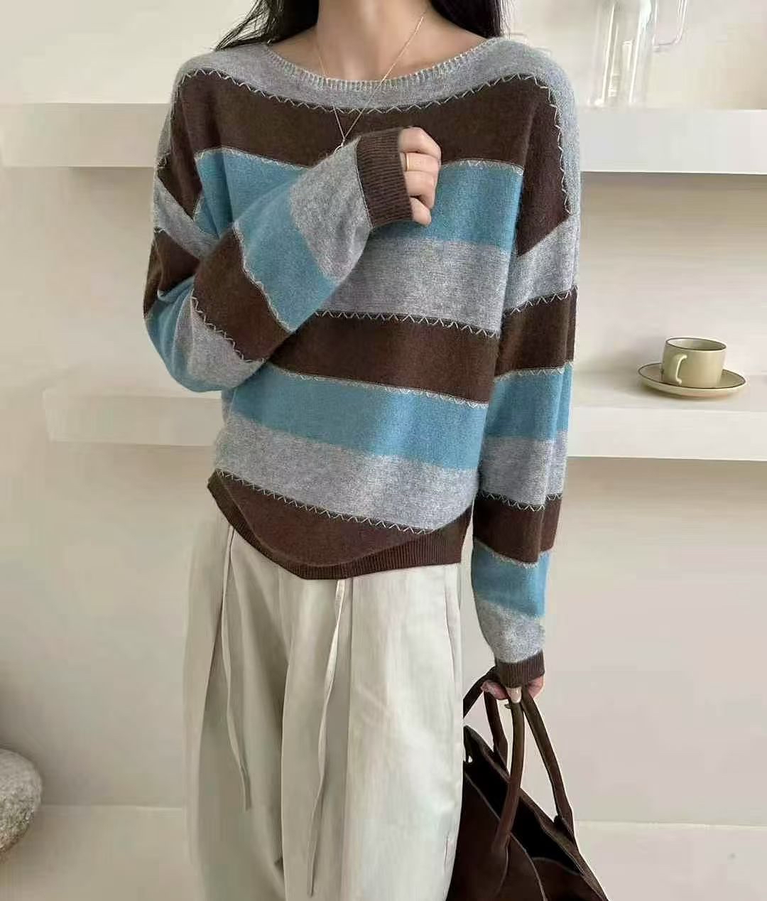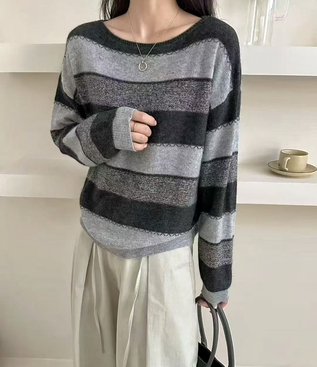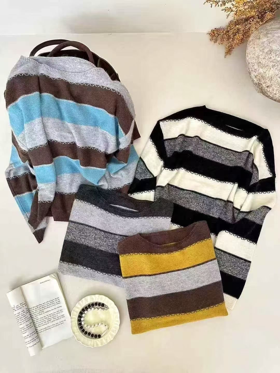 (韓國預購)柔軟針織🧶間條襯衣 #Top18951