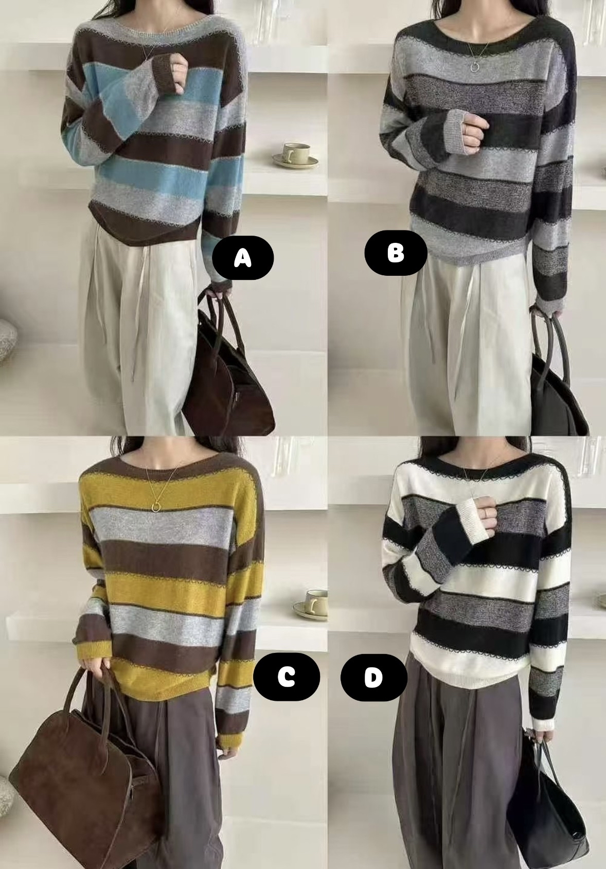 柔軟針織🧶間條襯衣 #Top18951 · 🔸Made in Korea 🇰🇷 🔸顏色:A,B,C,D · 📐尺寸📐 彈性針織 肩15“胸 40”長24”