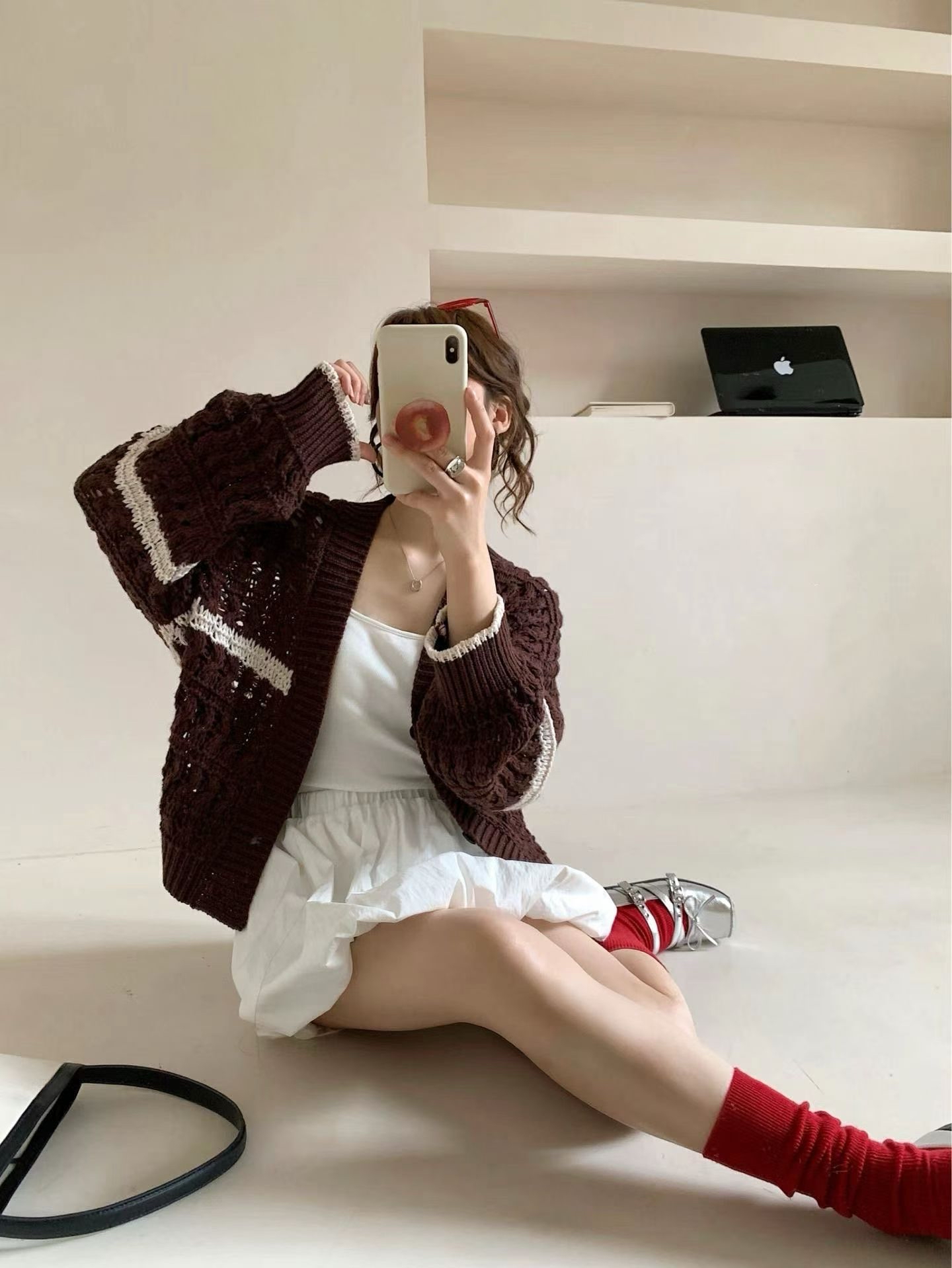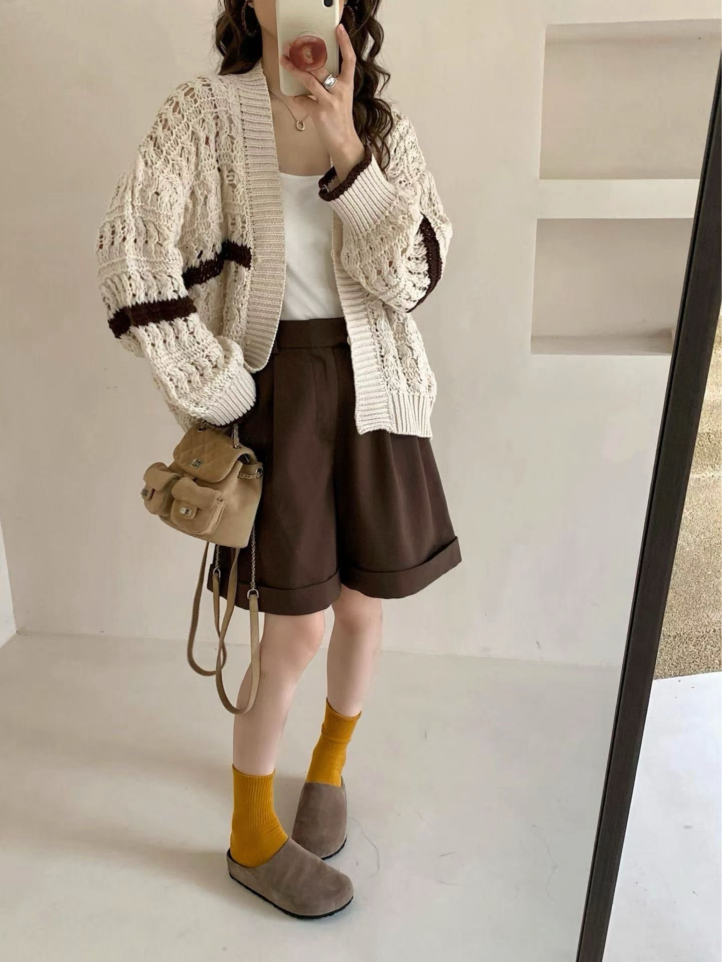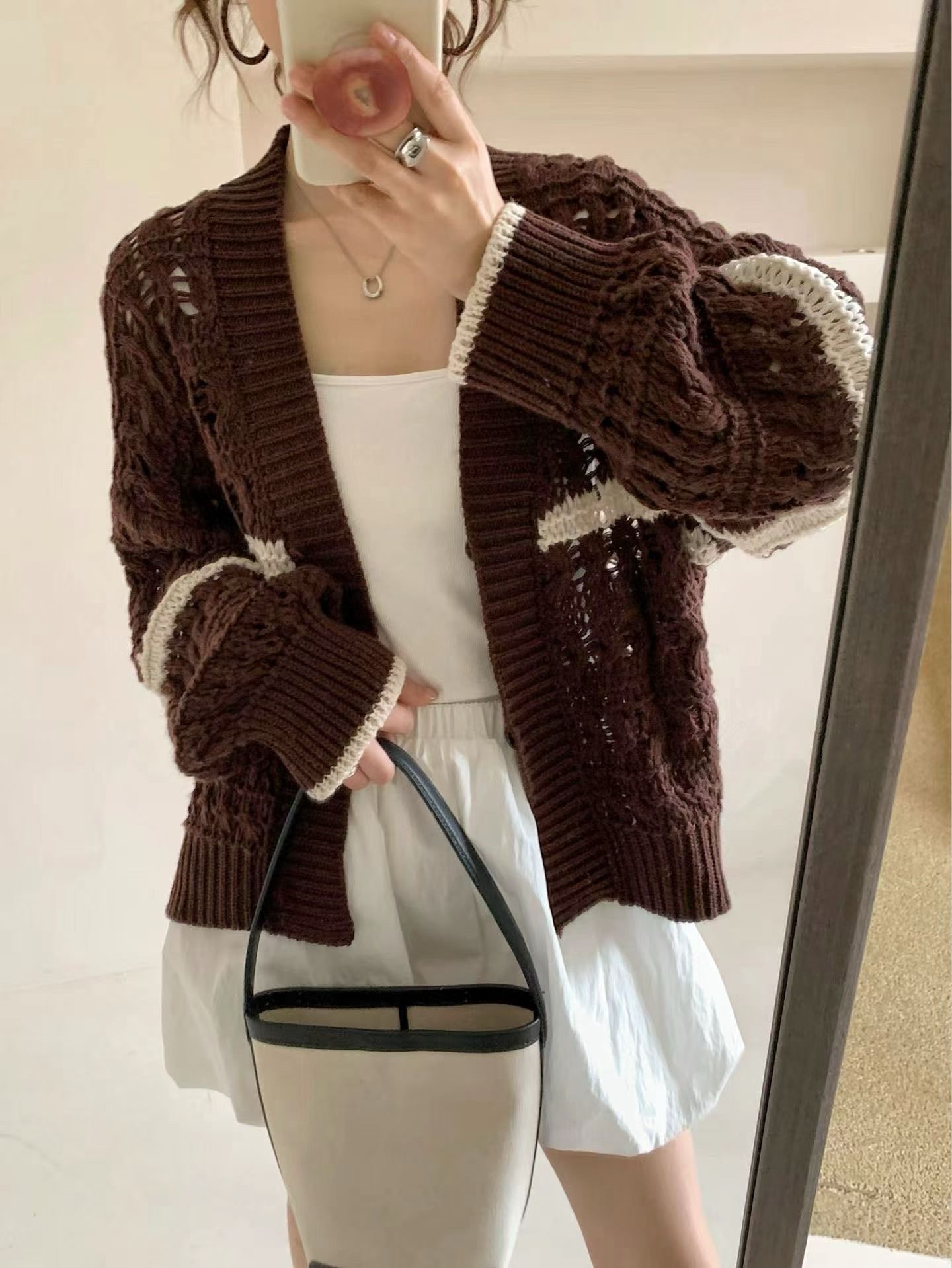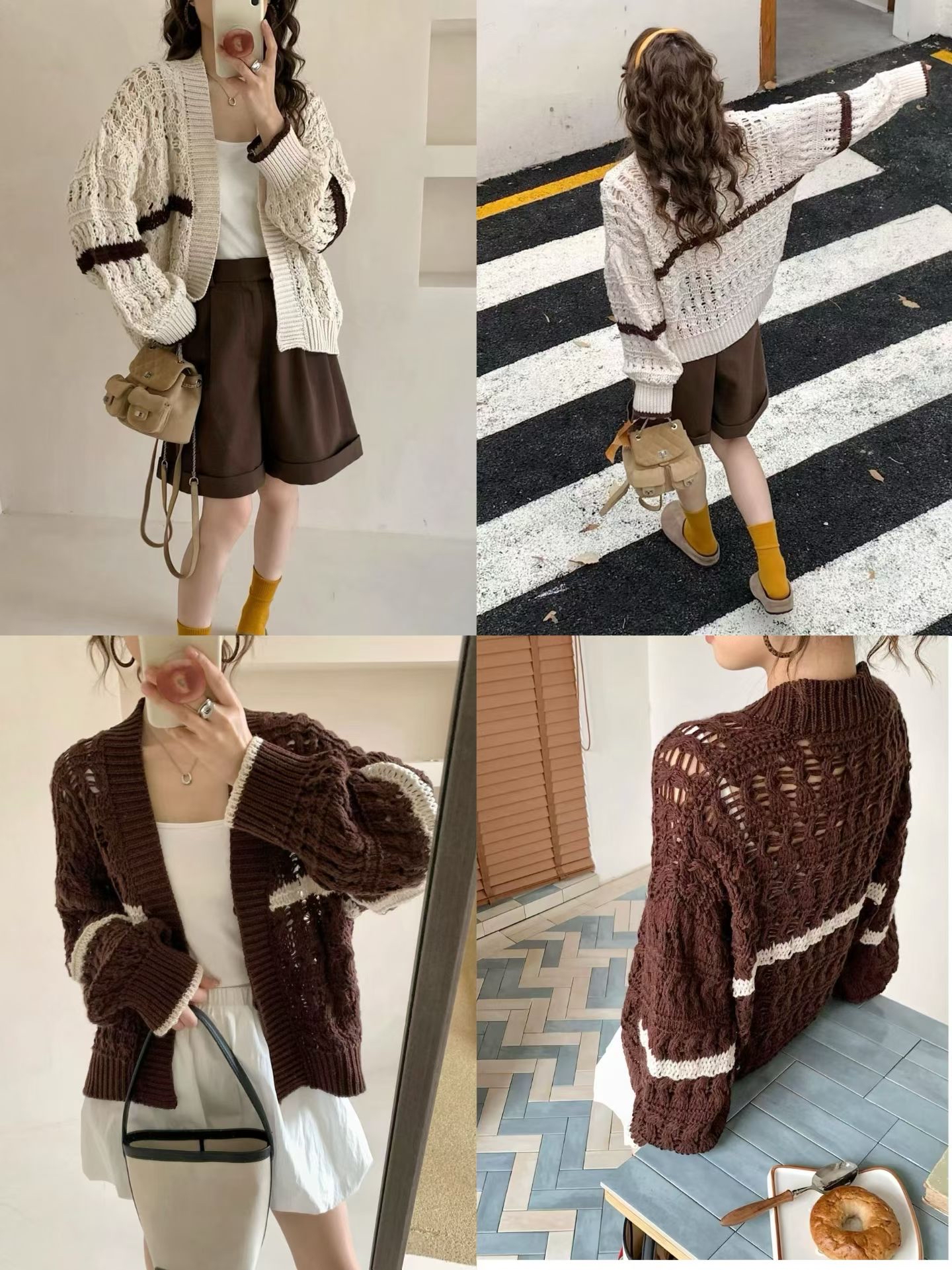 秋日感🍁勾花針織外套 #Top18950 · 🔸Made in Korea 🇰🇷 🔸顏色:米白,啡 · 📐尺寸📐 彈性針織 肩16“胸 44”長25”