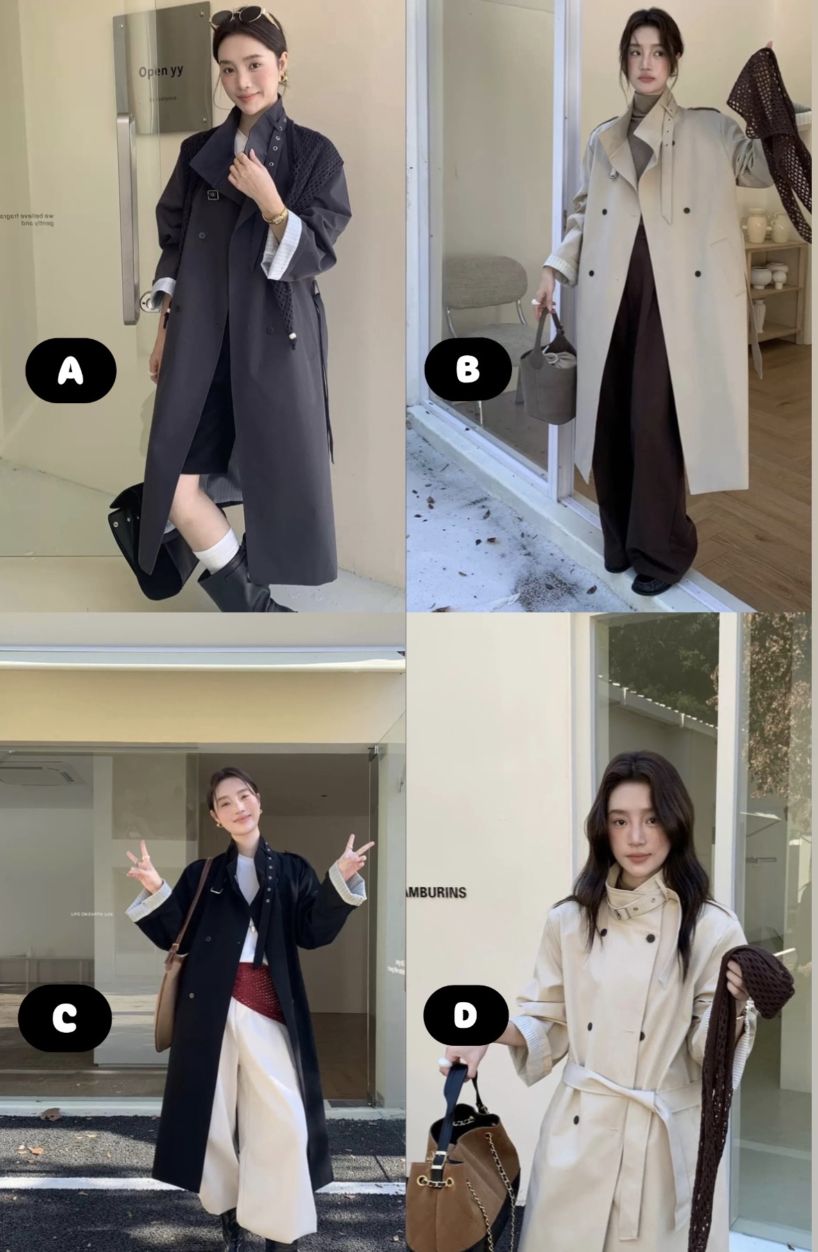 🧥氣質風衣大褸(配披肩) · 🔸Made in Korea 🇰🇷 🔸顏色:A碳灰色,B杏色,C黑色,D米白色 · 📐尺寸📐 肩17.5“胸 43”長42”